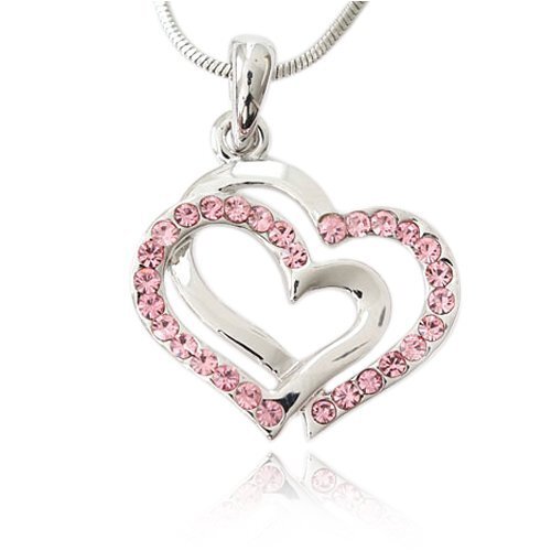 List Price: $29.99 Price: $26.99 Sale: $16.99 You Save: $13.00 (43% eligible for FREE Super Saver Shipping and Free Returns.Details Pink Crystal Double Heart Charm Pendant Necklace Fashion Jewelry
