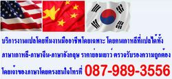 บริการรับแปลภาษา เกาหลี จีน อังกฤษ โดยเจ้าของภาษาโดยตรง รับรองความถูกต้อง ราคาไม่แพงโทรมาได้เลยที่ 087-989-3556