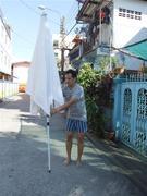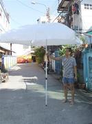 ร่ม ทรง สี่เหลี่ยม สีขาว สูงประมาณ 3 เมตร ขาตั้งไม่มี
