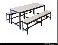 ชุดโต๊ะโรงอาหาร หน้าโฟเมก้าขาว ขาตาย ขาเหล็กพ่นสีดำ โครงเหล็กกล่องขนาด 3.2x3.2 ซม.