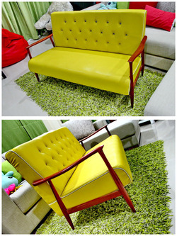 ขายโซฟาเรโทร-โซฟาขาเหลา ทรงโบราณสีเหลือง และโซฟาเบด ############################################## #โซฟาเรโทร-โซฟาขาเหลา ไม้แข็งงานยุค 60