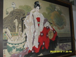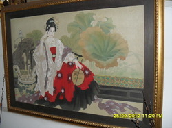 ภาพเขียนสีน้ำบนผ้าไหมจีน พร้อมกรอบไม้สักขนาด 102x143 ซม.
