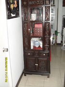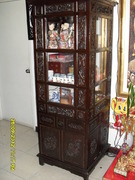 ขายตู้โชว์ไม้สัก 3 ชั้น สไตล์ตะวันออกสีโอ๊ค ขนาด 68x68x180 ซ.ม.