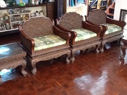 ชุดรับแขกไม้สัก แกะสลักละเอียด เก้าอี้ยาว 1 ตัว เก้าอี้เดี่ยว 3 ตัว โตะข้าง 2 ตัว โตะกลาง 1 ตัว