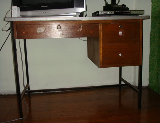 โต๊ะไม้ ยาว 38 1/2 นิ้ว สูง 30 นิ้ว มี 3 ลิ้นชัก แข็งแรง