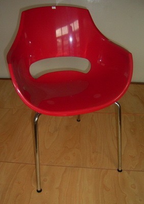 CDเก้าอี้พลาสติกสีแดง โครงขาเหล็กชุบโครเมี่ยม