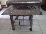 ขายชุดโซฟาหนัง PVC สีน้ำตาลแก่ สตูลยาวหลังเหลื่ยม 2 ที่นั่ง มีขาตั้งแสตนเลส คงทน (Size120*56*สูง90cm) เข้าชุดกับ โต๊ะกระจกเหลี่ยม ขาตั้งเหล็ก ขนาด 21*21 นิ้ว ทั้งชุดราคา 2700 บาท ใหม่มาก เพิ่งใช้มาสองเดือน ติดต่อ เปา 0851238647 (สินค้าอยู่แถวนวมินทร์ครับ)