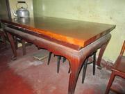 โต๊ะ ไม้มะค่าแท้ ขนาด 98x150 ซม. หนา 2 นิ้ว มีเก้าอี้ให้ในชุดนี้ทั้งหมด