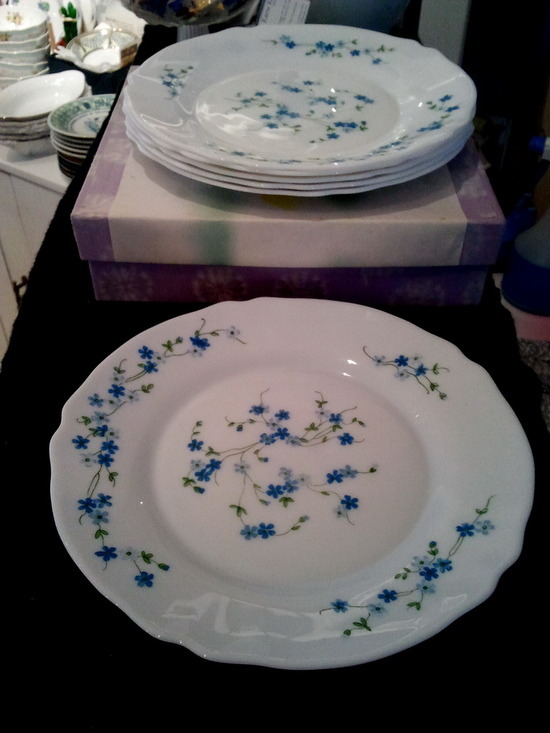 ชุดจาน arcopal ลาย ดอกไม้สีฟ้า ขนาดประมาณ 23 cm. มี 5 ใบ