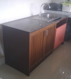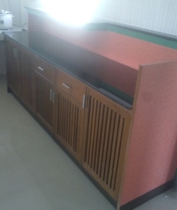 เคาน์เตอร์กาแฟ (ด้านหน้าบุฟอร์เมก้า, บานเปิดไม้สัก, TOP หินแกรนิตสีดำ) 3 ฃิ้น/ชุด