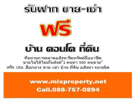 รับฝากขาย ปล่อยเช่า บ้าน คอนโด ที่ดิน อสังหาทุกชนิด จริงใจ รวดเร็ว สัญญาเปิด ท่านยังคงขายและปล่อยเช่าเองได้ตามปกติ สนใจ โทร.0887570894,www.mixproperty.net
