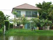 บ้านเช่าราคาถูก หมู่บ้านเลคการ์เด้น อ่อนนุช- สุวรรณภูมิ-สุวินทวงศ์ บ้านน่าอยู่ หลังบ้านติดทะเลสาบ