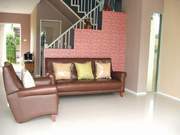 Cheap& Beauty House for rent at Lake Garden Village Onnut-Suvarnnabhumi and Suwintawong road (Ramintra-Minburi Area) near Suvarnnabhumi Airport, 92 sq.wa,160 sqa.m 3 bed 2 bathroom,1 livingroom,kitchen,2 Airs and some Furniture suit for resident , near Lake , Security guard .The rental price is 12,500 Baht /month( for 2 years contract ) near Suvarnnabhumi Airport 20 minutes.
