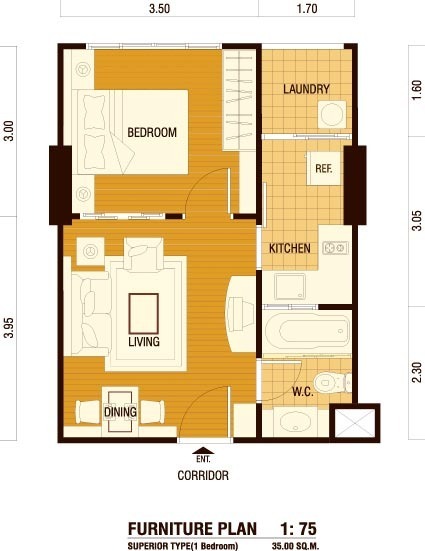 1ห้องนอน 1ห้องครัว 1 ห้องรับแขก 1 ห้องน้ำ 35 ตารางเมตร