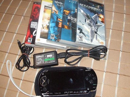 เครื่องเล่นเกมส์แบบพกพา SONY PSP ครบชุด พร้อมเกมส์ 4 เกมส์ และหนัง 1 เรื่อง