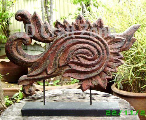 งานไม้แกะสลัก (งานเก่า) รูปทรงสวยงาม เหมาะสำหรับตกแต่งบ้าน หรือ ร้านค้าสไตล์ไทย ๆ ขนาด: ความสูง (รวมฐาน) ประมาณ 40 ซม. x ความกว้าง ประมาณ 48 ซม. ส่งไปรษณีย์ลงทะเบียน ค่าส่ง 80 บาท หรือ นัดรับของได้ที่ จัตุจักร เจเจมอลล์ ศรีย่าน เทเวศน์