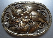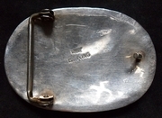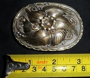 หัวเข็มขัดเงินแท้ ด้านหน้าลงกาไหล่ทอง K ลวดลายสวยงามมากครับ ขนาดประมาณ 3 นิ้ว สวยสมบูรณ์หายากครับ