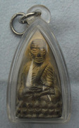 หลวงพ่อทวด สก. พิมพ์สามเหลี่ยมพิมพ์ใหญ่ เนื้อนวะ หล่อดินไทย (พิเศษมากๆ ตอก 2 โค๊ด / No.3333 ) หลัง สก. รุ่นแรก สร้างปี 2544 วัดห้วยมงคล จ.ประจวบคีรีขันธ์ มีน้อยองค์ พระสวยมาก แท้ หายากมากๆ และเลี่ยมกรอบพลาสติกอย่างสวย