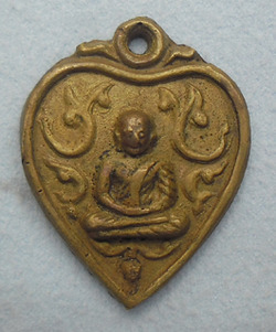เหรียญหล่อโบราณ พิมพ์รูปหัวใจ ด้านหลังเรียบ หลวงพ่อเงิน วัดบางคลาน หลวงพ่อพิธสร้าง ประมาณปี 24xx เนื้อทองผสม เนื้อสวยเพราะโลหะผสมไม่เข้ากัน โดยตรงใบหน้าของหลวงพ่อเป็นเนื้อทองแดง พิมพ์ทรงคมชัดลึก เก่า สวย แท้ หายาก
