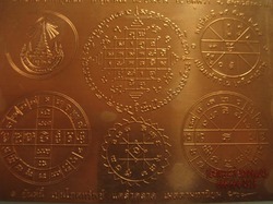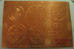 แผ่นยันต์ทองแดง ดวงวางศิลาฤกษ์อุโบสถ หลวงพ่อเนื่อง วัดจุฬามณี ปี 2511