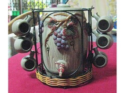 ถังไวน์องุ่น(เก่าเก็บ)พร้อมแก้ว 6 ใบ ถังสูง 7 นิ้ว และแก้วสูง 1.5 นิ้ว งานเซรามิค 900 บาท