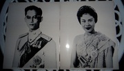 ภาพพิมพ์ขาวดำเก่าในหลวงคู่ราชินี สวย สมบูรณ์