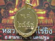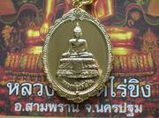 เหรียญหลวงพ่อวัดไร่ขิง จ.นครปฐม เหรียญรูปไข่ขนาดกลาง เนื้อกะหลั่ยทอง จัดสร้างปี 2554