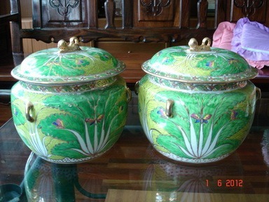 ขายโถลายผัก 2 ใบ สวยสวย ราคาใบละ 1,000 บาท ขายเป็นคู่ครับ พร้อมส่ง โทร 081-278-2636