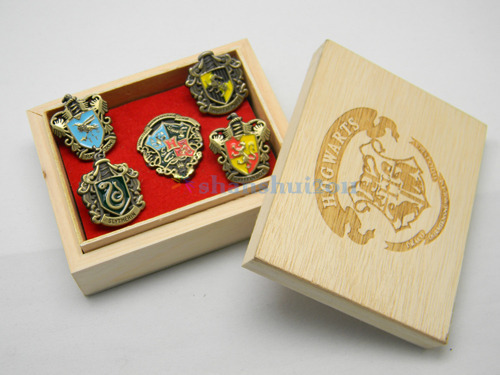 2012 Newest Hot Harry Potter Hogwarts House Metal Pin Badge 5pcs + Wooden Box