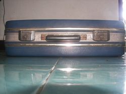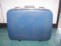 กระป๋าใส่เสื้อผ้ายี่ห้อ SPECIAL DESIGN รุ่นเก่าประมาณ 30-40 ปีสีฟ้าขนาด 21”x15.5” ภายในสีแดง มีกุญแจพร้อมภายนอกสภาพ 90% ไม่มีขาดภายในสภาพ 100%