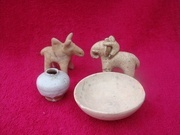 ขวด ถ้วย สังคโลก ศิลปะสมัยสุโขทัย ดินเผาเคลือบขาว ศตวรรษที่ 20-21 ไม่มีลวดลาย สภาพสมบูรณ์ ของแท้ 100%หายากมาก ราคา 1,300 บาท/ชุด (ขวด กว้าง 4 cm. สูง 3.6 cm./ ถ้วย กว้าง 7.7 cm. สูง 3 cm.) (ตุ๊กตาช้าง วัวขายแล้วครับ)