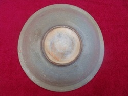 จานโบราณ ศิลปะสมัยล้านนา ดินเผาเคลือบใสสีเทาอมฟ้า ศตวรรษที่ 21-22 เส้นผ่านศูนย์กลางยาว 21.6 cm. สูง 4.5 cm. ในจานไม่เขียนลวดลาย สภาพสมบูรณ์ แตกลาน ของแท้ 100%หายากมาก ราคา 4,500 บาท