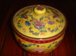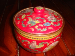 โถลายครามจีน( ไม่มั่นใจว่าอยู่ในสมัยราชวงค์อะไรค่ะ ) กว้าง 5นิ้ว สูง 3.75 นิ้ว ลายดอกไม้ สีแดงและสีเหลือง เก่าเก็บสมัยบรรพบุรุษค่ะ สภาพดีมาก ขายไม่แพงค่ะ ราคาคู่ 5,500 บาท แต่ถ้าเดี่ยว 3,000บาท ชอบใจ โทรมาคุย ส่งอีเมล หรือนัดดูสินค้าได้เลยค่ะ