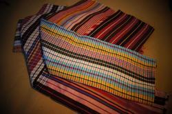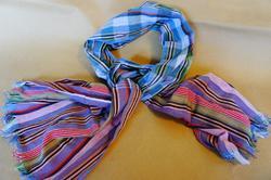 ผ้าพันคอ ผลิตจากผ้าขาวม้า มี 2 แบบ คือ แบบชายครุย, แบบชายปกติ size 60x160 ราคาขายปลีกผืนละ 140,120 บาท