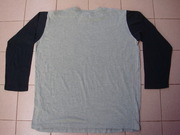 ขายเสื้อคอกลมแขนยาวDKNYสีเทาแขนสีดำ ไซส์ L Made in USA ที่อกปักโลโก้DKNY