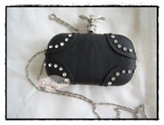 Alexander McQueen Black Leather Small Box Clutch with Crystal กระเป๋าคลัช หนังสีดำ ประดับ คริสตัล พร้อม สายโซ่สะพาย (ถอดออกได้) ประดับหัวกระโหลก สัญลักษณ์ของยี่ห้อ Alexander McQueen ขนาด W16.5 x H10 x D5 cm