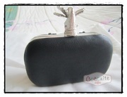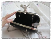 กระเป๋าคลัชไปงาน Alexander McQueen Black Leather Small Box Clutch with Crystal
