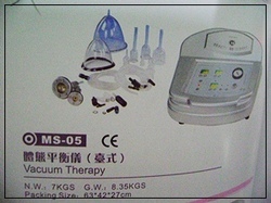 เครื่อง MS05 ใช้สําหรับกระชับหน้าอกและดูด Vacuum Therapy Beauty Equipment Working Theory: 1. Stimulate the point: Stimulate the point as Chinese traditional cupping, it help to accelerate activation and organ enginery. 2. Rolling steel ball: Utilize the movement of special steel ball, pressure the muscle, accelerate the blood circulation and decompose the toxin, it will not hurt the musculature, but active the skin. 3. Move by inhalation. It ccan accelerate lymph circulation and unfy the toxin in body, eliminate the aged rejectamenta and toxin. Functions: Accelerate the blood circulation, strengthen the elimination of toxin and rejectamenta, and eliminate the fattiness. The fattiness is sclerous reseau which shape from fat, water, toxinunder. It appear clear on face and cannot remove, the color like orange, the surface is roughness. It subcutaneous tissue has great influence to the body, It will accumulate under the subcutis, cause the epidermal disease because the subcutaneous tissue is pressured, and affect the evacuative enginery and decompounding or accumulation of fat, and the skin loose elasticity. . Renew the skin, avoind ageing . Ameliorate wrinkle, gravid spot, fat spot . Ameliorate scar, fire scar . Ameliorate floating fat of capillary . Accelerate the metabolism of melanin . Oxygenous exercise, help to ameliorate the metabolism of lymph . Sculpture party Specification Packing size: 63*42*27cm N. W: 7KG G. W: 8.35KG ---http://reibeautycare.siam2web.com ---Email: