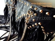 กระเป๋าแฟชั่น Vivian หนัง PU สีดำ ประดับพู่ สไตล์โบฮีเมียน พร้อมส่ง ภาพถ่ายจากสินค้าจริง