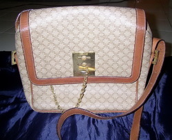 CELINE กระเป๋าสะพาย ทรง Messenger หนังแท้สีครีมตัดขอบสีน้ำตาล