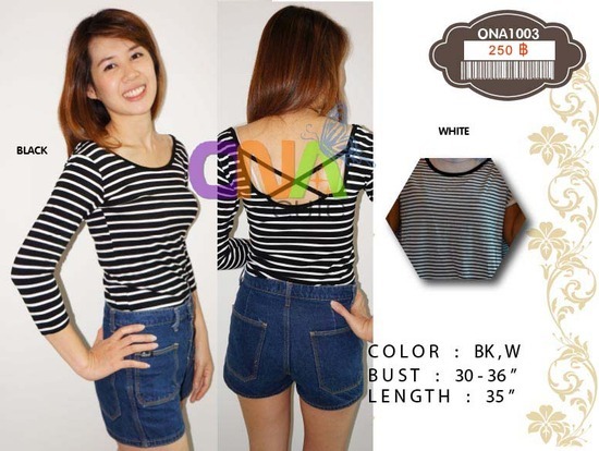 เสื้อยืดไขว้หลัง สีดำ-ขาว ลายทางใหญ่ สี ขาว-ดำ รอบอก 30"-36" ความยาว 35"