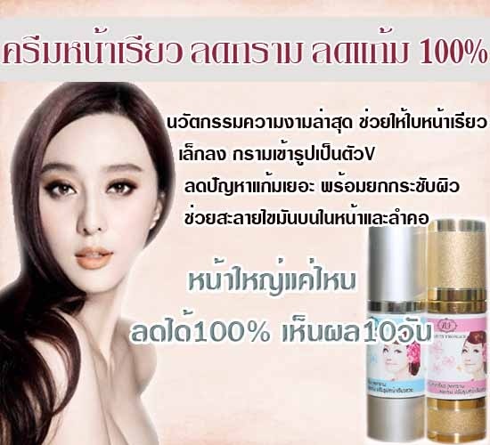 ครีมลดกราม ลดแก้ม หน้าเรียว100%โดยไม่ต้องฉีดโบท็อก ประสิทธิภาพดีเลิศช่วยยกกระชับหน้าให้เข้ารูป ลดการย่อนคล้อยของหน้าและคางทำให้หน้าเรียวลงและเล็กลงอย่างเห็นได้ชัดเจนใน20วัน