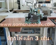 จักรพ้งม้าบิน 3 เส้น แบบตั้งโต๊ะ ใช้มอเตอร์ไฟฟ้า สามารถยกไปตั้งทำงานได้ทุกสถานที่ เคลื่อนย้ายสะดวก ใช้พ้งเก็บริมงานผ้าทั่วไป