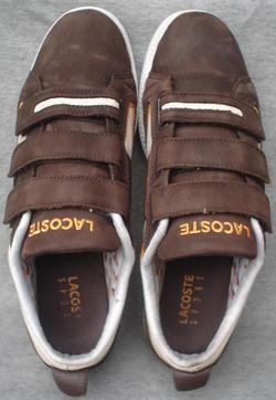 LACOSTE หนังผสมผ้าน้ำตาลสายแปะ 3 เส้นเบอร์ 42