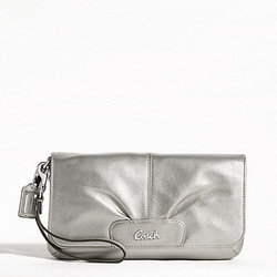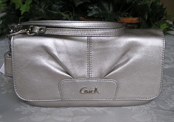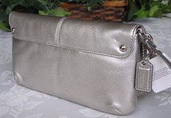 COACH LEATHER LARGE FLAP WALLET / WRISTLET SILVER **ราคา 2,500 บาท**