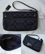ขาย Coach Large Signature Sateen Flap Clutch Wristlet Wallet Bag Purse Black**ราคา 2,500 บาท**