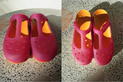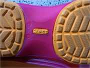 รองเท้ายี่ห้อ 'Crocs' สีชมพูบานเย็นตัดกับสีส้ม