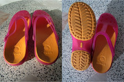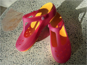 รองเท้ายี่ห้อ 'Crocs' สีชมพูบานเย็นตัดกับสีส้ม แบบหัวมน พร้อมสายคาด ที่กำลังhitอยู่ตอนนี้ ของแท้แน่นอนค่ะ แม่ค้าใส่ไปเพียง2-3ครั้งเอง พอดีใส่แล้วมันไม่ค่อยชอบ เนื้อซิลิโคนแบบดี size9 แต่แอบใส่แล้วฟิตไปนิดนึง ขายตามสภาพ ล้างทำความสะอาดให้เรียบร้อยแล้วนะค่ะ สภาพดีแน่นอน เพราะแม่ค้าใส่น้อยครั้งมาก ขายตามสภาพเลยจ๊า ราคา200+40บาท ค่าจัดส่งนะค่ะ