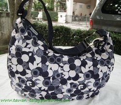 สีขาว/น้ำเงินกรมท่า ลายดอกน่ารักมาก มีรอยเปื้อนอยู่นิดหน่อยค่ะ แวะดูสินค้าอื่น กระเป๋า coach ทั้งมือสองและใหม่ ราคาถูกที่สุด ได้ที่ http://www.tawan-talay.pantown.com