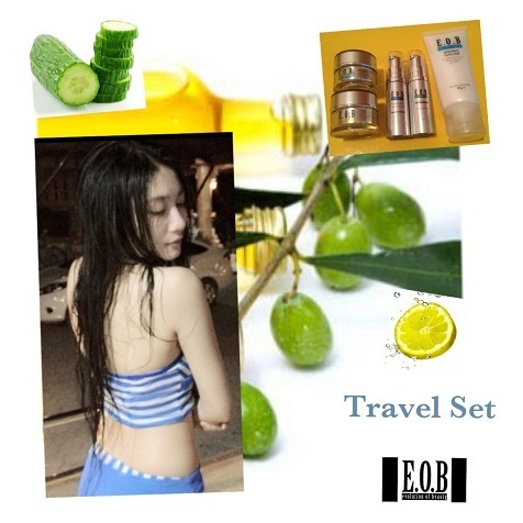 E.O.B Travel Set Travel Set หน้าขาวใส เคล็ดลับ ซุปตาร์ สุดยอดนวัตกรรมจาก E.O.B. ผลิตด้วยเทคโนโยลีที่ก้าวล้ำนำสมัยซึ่งจะช่วยให้ผิวของคุณเจิดจรัส ดูมีออร่าและมีชีวิตชีวิตชีวาสามารถใช้ได้กับผิวธรรมดาและผิวที่บอบบาง ด้วย Travel Set หน้าขาวใส เคล็ดลับ ซุปตาร์ ที่เริ่มต้นจากขั้นตอนเตรียมสภาพผิวและบำรุง ปกป้อง ลดฝ้า, กระ,จุดด่างดำ รวมทั้งซ่อมแซม สภาพผิว ทั้งก่อนและหลังออกแดดสามารถออกแดดได้โดยไม่ต้องกังวลกับแสงแดดอีกต่อไป มาสัมผัสความพิเศษแบบสวยเนียน เลิศสุดๆ ได้แล้ววันนี้ท่านจะรูสึกได้ถึงความสะอาด และความเปลี่ยนแปลงที่เห็นได้อย่างชัดเจน สินค้า E.O.Bได้รับความนิยมอย่างแพร่หลาย จากยอดขายที่เพิ่มขึ้นอย่างต่อเนื่อง Travel Set หน้าขาวใส เคล็ดลับ ซุปตาร์ ที่ช่วยปกป้องผิวจากรังสี UVA และ UVB ได้อย่างมีประสิทธิภาพ เมื่อใช้ครบset ที่เริ่มตั้งแต่ ดีท้อก คลีนซิ่ง เคล็ดลับดารา ที่ใช้ล้างเครื่องสำอาง และสิ่งแปลกปลอม ได้อย่างหมดจรด, เซรั่มบำรุงผิวหน้า ช่วยให้ผิวหน้าขาวใส สามารถลดฝ้า,กระ,จุดด่างดำดูจางลง, ครีมลดริ้วรอยช่วยปรับผิวให้ดูเรียบเนียนขาวใส และปกปิดริ้วรอยและจุดด่างดำทันทีที่ใช้ทั้งยังซ่อมแซมผิวที่สึกหรอจากการออกแดด และปิดท้ายด้วย ครีมบำรุงและรองพื้น บางเบาดุจใยไหม และด้วยคุณสมบัติพิเศษของเนื้อครีมที่ง่ายต่อการซึมซับเข้าสู่ผิวจึงให้ความชุ่มชื้นระหว่างวันโดยไม่ทำให้ผิวหน้าเกิดความมัน ทาปุ๊บก็สามารถออกแดดได้โดยไม่ต้องกังวลกับแสงแดดอีกต่อไป เพียงใช้เป็นประจำทุกเช้าก่อนออกแดด